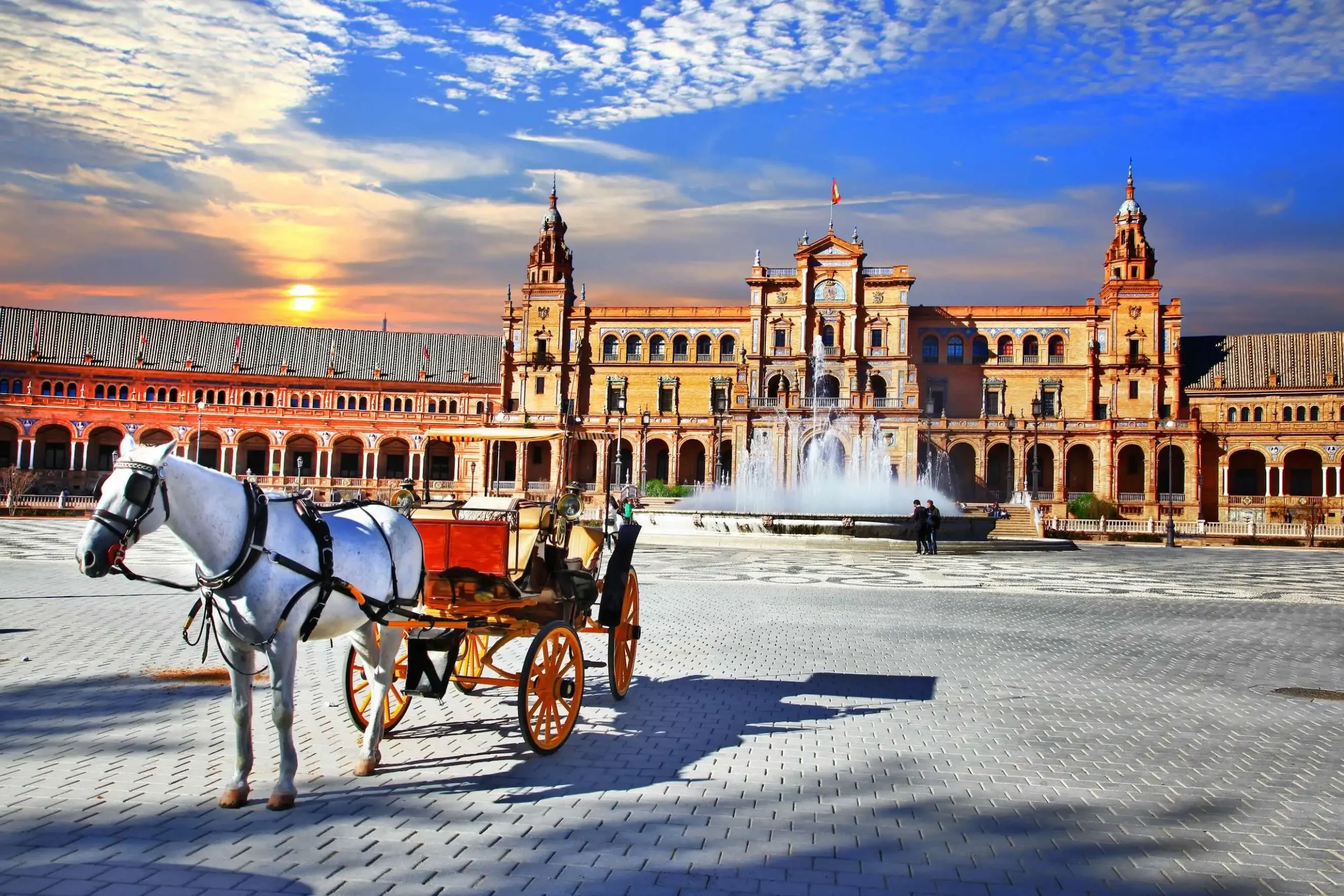Départ vers Séville. Une ville que vous allez adorer d’autant qu’elle se trouve à 1h30 de route de Cordoue. En chemin, n’hésitez pas à vous arrêter du côté d’Ecija afin de découvrir sa magnifique place centrale. La capitale Andalouse, tout comme le sud de l’Espagne, jouit d’une histoire riche. D’influence grecque, phénicienne, carthaginoise et romaine, Séville se caractérise par sa douceur de vivre, sa fameuse « siesta » et son patrimoine culinaire et culturel propre à la région.